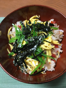 いつも3日に残ったお煮しめを細かく刻んでバラ寿司をつくるのですが